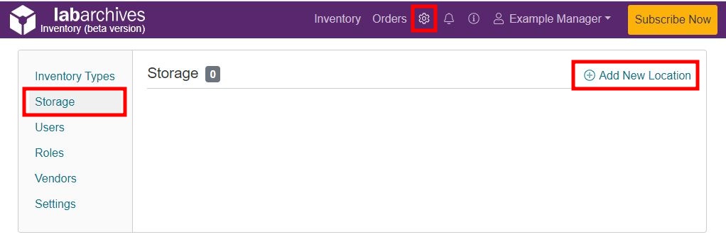 - To create a new top-level storage location, click “Add New Location” at the top.