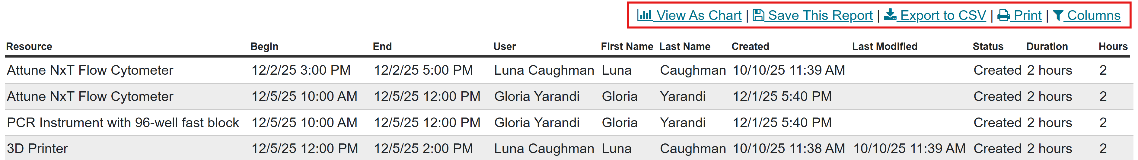LabArchives Scheduler allows Administrators to generate detailed usage reports to track bookings and Resource use. The data found in the reports can be used to help assess the value of Resources based on utilization and to make educated metric based decisions on purchasing and scheduling. The reports provide valuable insights into who is using, when, and how often. Any Custom Attributes that may have been created to support Reservations, Users or Resources can also be included in the reporting.