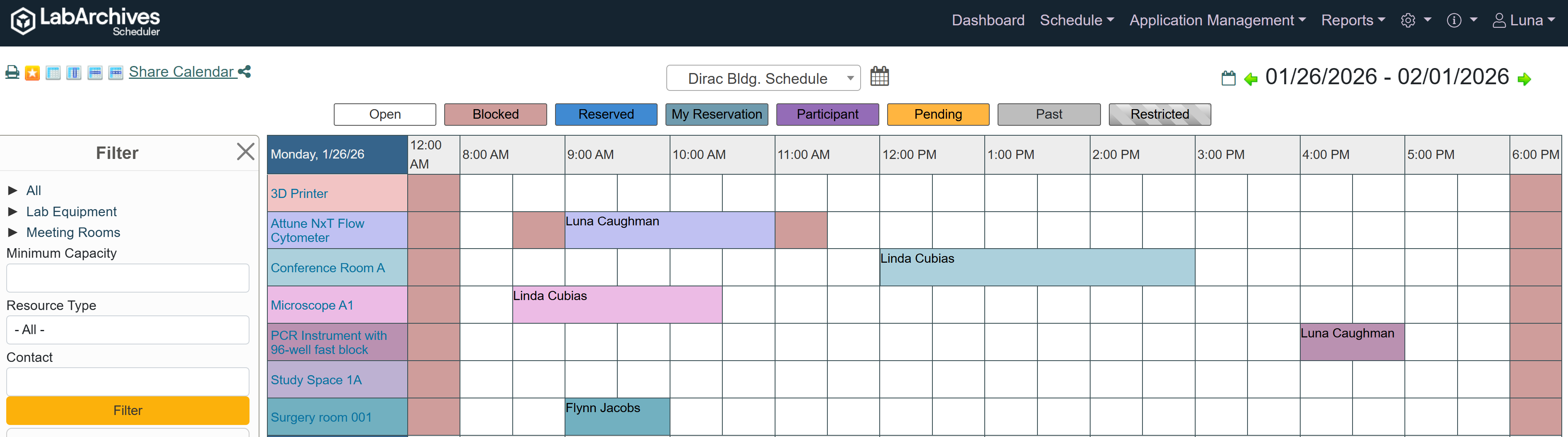 The scheduling system provides two main calendar views—My Calendar and Resource Calendar—to help you easily find and manage reservations.